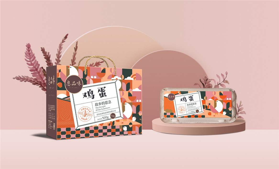 以“故鄉(xiāng)的思念”為品牌溝通語言,從息品味產(chǎn)品生態(tài)特征,地域代表文化、當(dāng)?shù)孛袼酌耧L(fēng)等提取包裝設(shè)計元素,以平面幾何形態(tài)的方式把產(chǎn)品、產(chǎn)地、相關(guān)文化特征進行符號化設(shè)計視覺表達,用一種與當(dāng)下農(nóng)副產(chǎn)品市場不同的包裝表現(xiàn)方式設(shè)計,展現(xiàn)綠色新生活,迎合當(dāng)下消費升級審美升級的新消費趨勢,快速建立品牌認知。